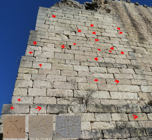 En el muro norte participa el de la cruz griega, no así el de la A, y se añade un cuarto que marca con una escuadra. Son los que tallan la portada que vemos desde el interior.
