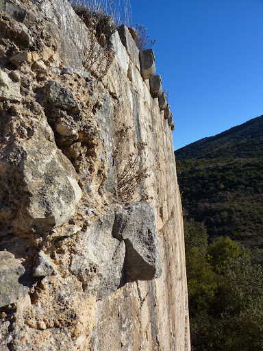 Pallaferro: Para empezar ninguna de las casas o corrales que circundan el cerro tienen en sus muros sillares de la iglesia en la cantidad que le faltan, no olvidemos que además existía un castillo. Tampoco es cierto como veo repetido en la web, que los sillares se usasen para abancalar el lado oeste. Sillares testimoniales se encuentran siempre en dirección al pueblo aquí y allá. La iglesia de Vilanova tiene parte en su ábside y muros, el resto estaría en las casas más antiguas.