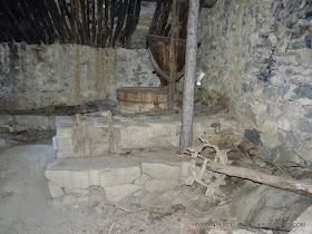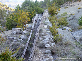 Si subimos barranco arriba caminaremos por una senda que no es otra cosa que la antigua acequia colmada. Quedan restos de una tajadera para desviar el agua cuando no se molía, cerca del edificio había un segundo aliviadero que oculta la vegetación.