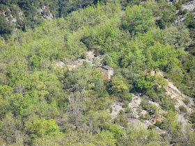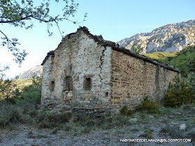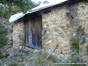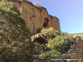 La ermita está sobre un pequeño cerro que nos queda a la derecha del barranco principal, no existe camino y hay que subir campo a través. Primero encuentro la casa del ermitaño, sus dos plantas tienen entradas propias, la baja se cubre con bóveda de cañón.