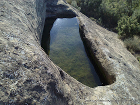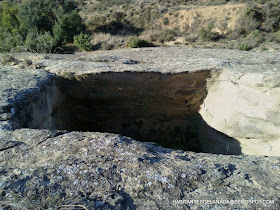 El poblado se situaba alrededor de una cresta arenisca donde hallaremos huecos diversos y entalladuras.