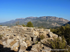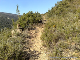 Desde allí tendremos la siguiente visión de la sierra que debemos afrontar por su parte baja donde se inicia un sendero. Hay que descender desde la casa por los campos ya que no hay camino.