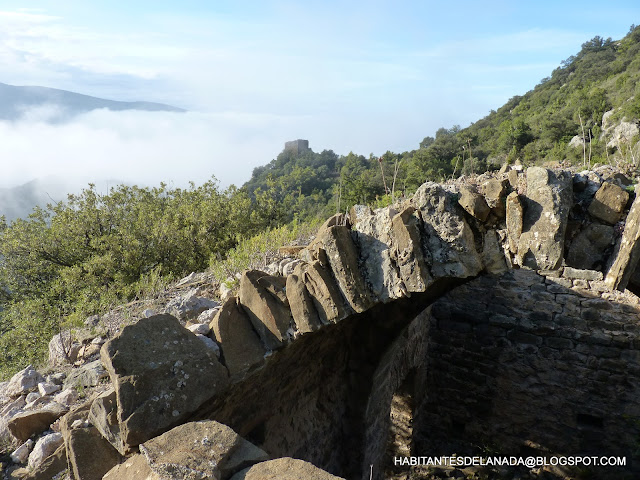 La senda asciende barranco arriba en dirección a Sant Pere de Cabrera, lo veo asomar de la vegetación en medio de un paisaje monumental entre el que yo soy minúsculo.