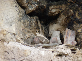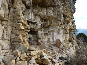 En este caso se salvó con una bóveda el espacio entre la pared y una roca separada, por encima de élla había otra planta envigada.