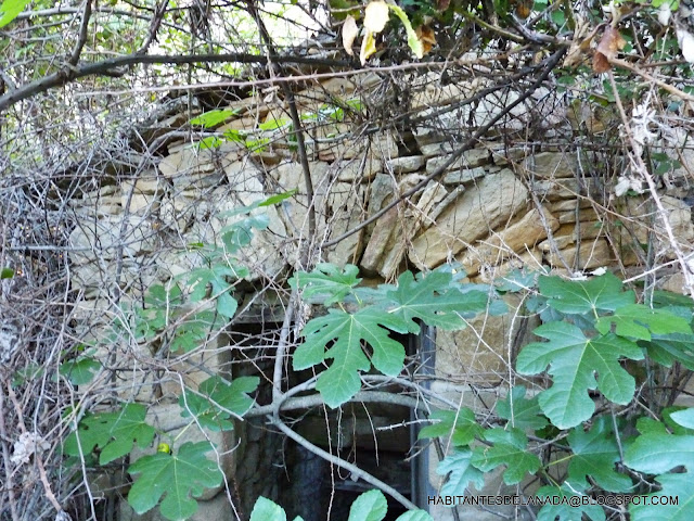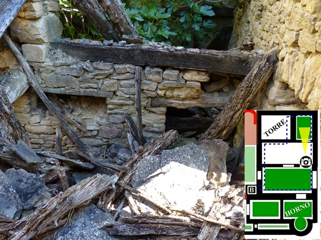 Subido a la caseta semicircular del horno veo el espeso zarzal que invade el interior. No sin cierto peligro me atrevo a llegar al centro de la casa caminando sobre el muro pero no veo lugar por dónde bajar y aun dado el caso iba a ser imposible moverse.
