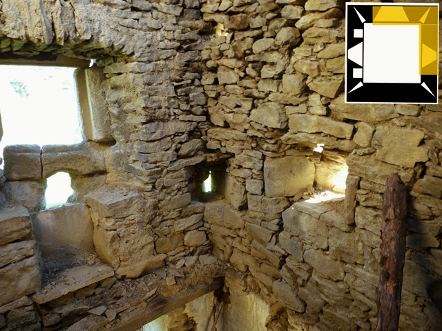 La "gracia" de su sistema defensivo es que queda practicamente oculto al exterior, aquí señalo las aspilleras del paramento norte tras su búsqueda.