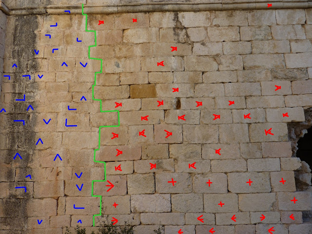 Dando por hecho que aprecian la diferencia que señala el remarcado, vamos al interior a confirmar si es así.(En esta imágen se aprecia además un sillar "discordante").