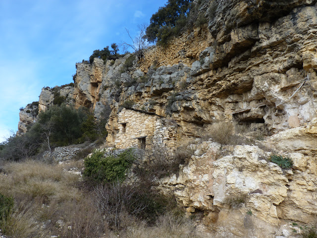 El objeto era llegar a los campos situados a la espalda de la balma. Campos donde si somos observadores, podremos ver está pequeña caseta, cuyas dimensiones me hacen pensar que quizá fuese un arnero.
