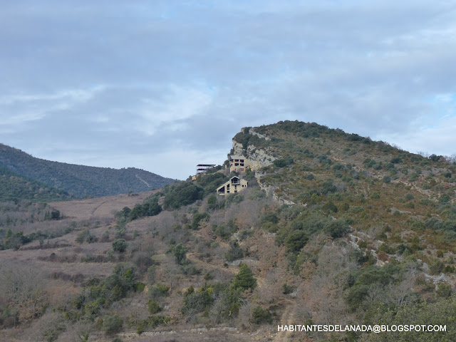 Sobre la casa se ve un muro que delimita una era plana a la que se accede con no poca dificultad.