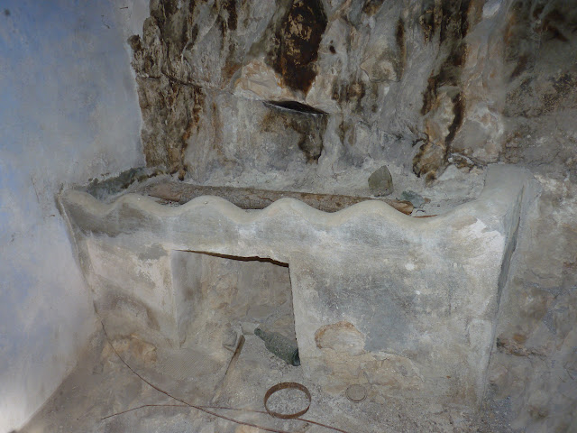 En este caso se salvó con una bóveda el espacio entre la pared y una roca separada, por encima de élla había otra planta envigada.